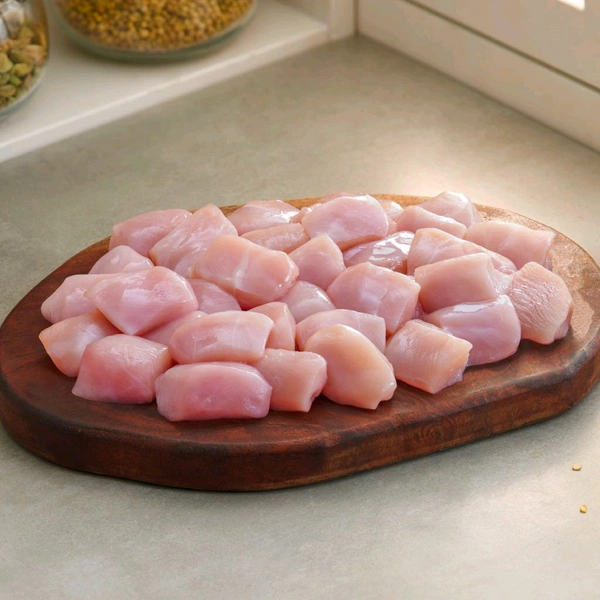 Chicken Boneless 1kg (Fresh, Premium Quality). 100% tender & juicy boneless pieces. Skinless, fat-trimmed & evenly cut. Perfect for: butter chicken, tikka, fry, curry, sandwiches & grill.